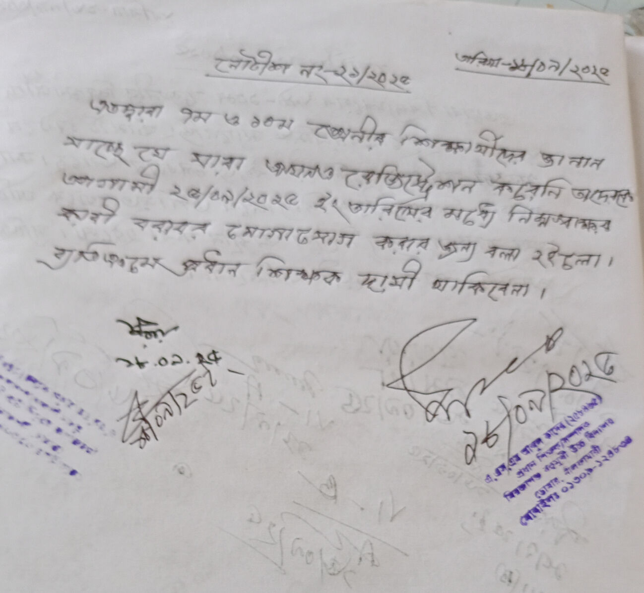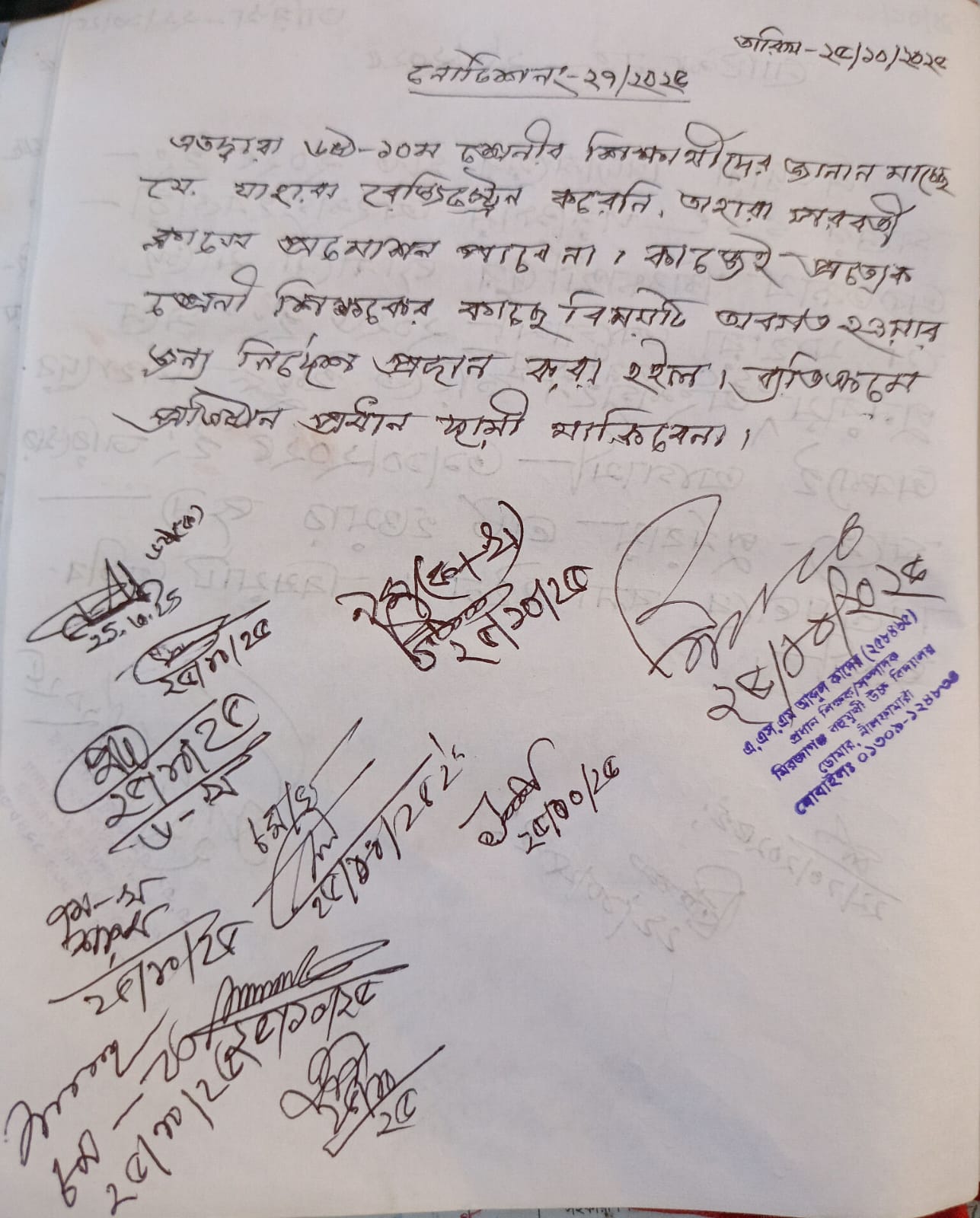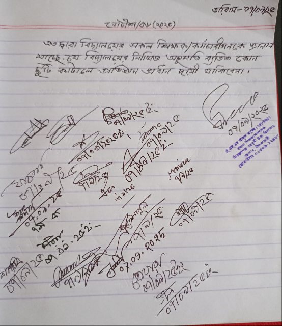 শিক্ষক কর্মচারীদের লিখিত ছুটি কাটানোর প্রসঙ্গে।