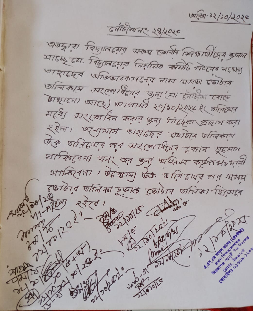 নিয়মিত কমিটি গঠনের লক্ষ্যে অভিভাবকগণের নাম খসড়া ভোটার তালিকা সংশোধন প্রসঙ্গে।