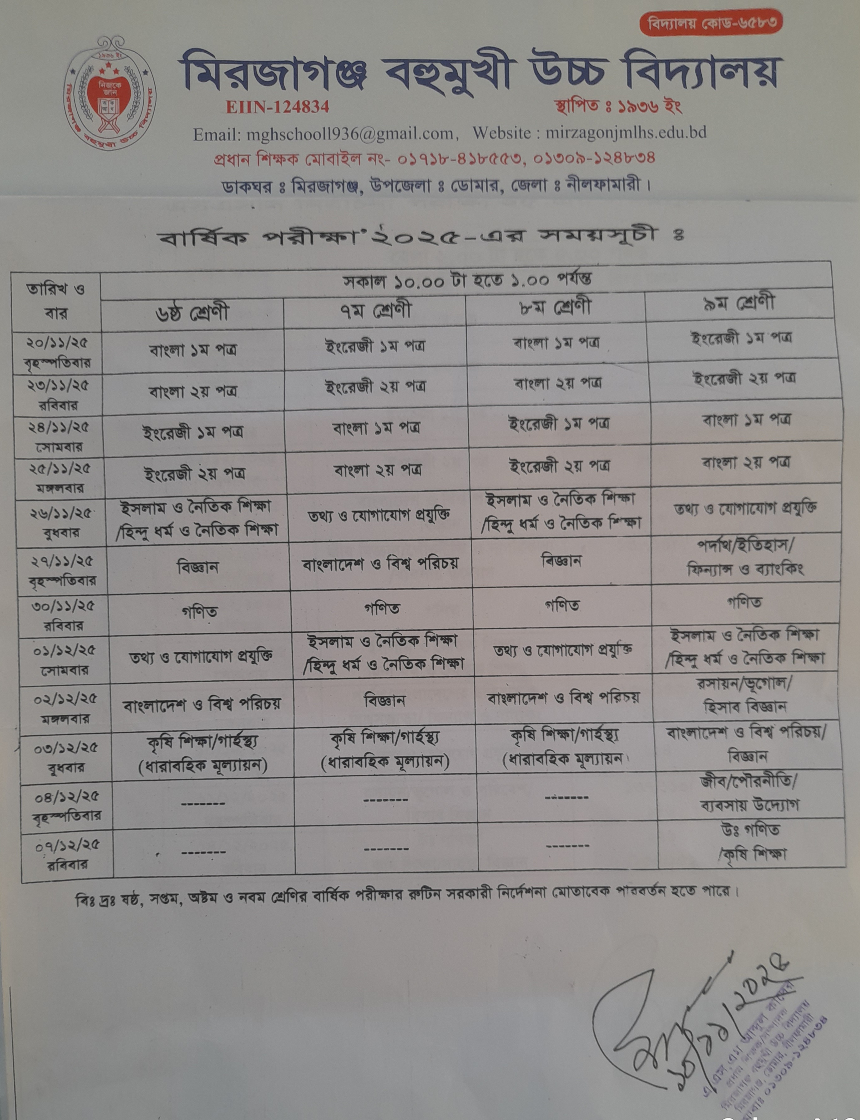 বার্ষিক পরীক্ষার রুটিন ২০২৫ ইং।